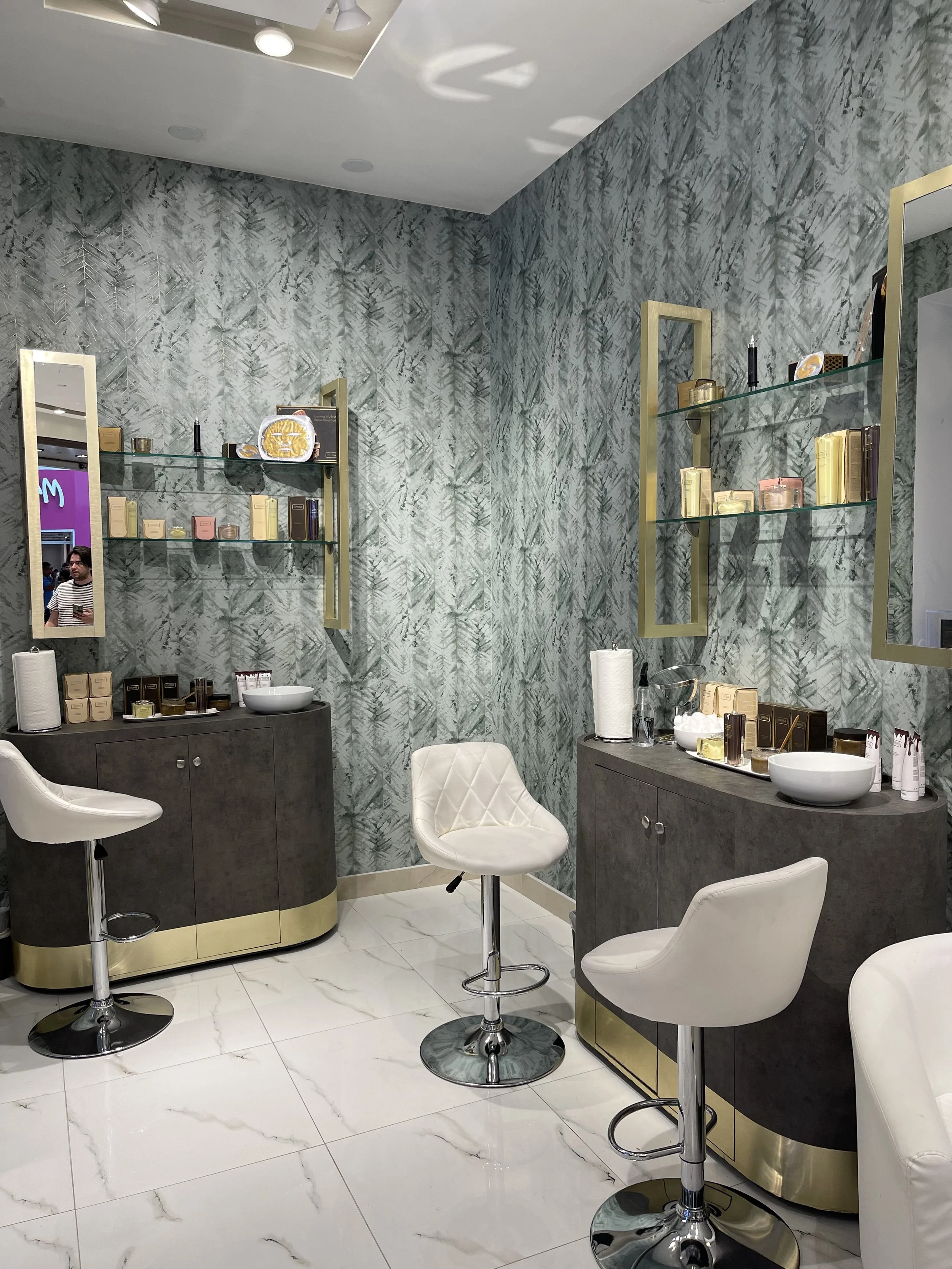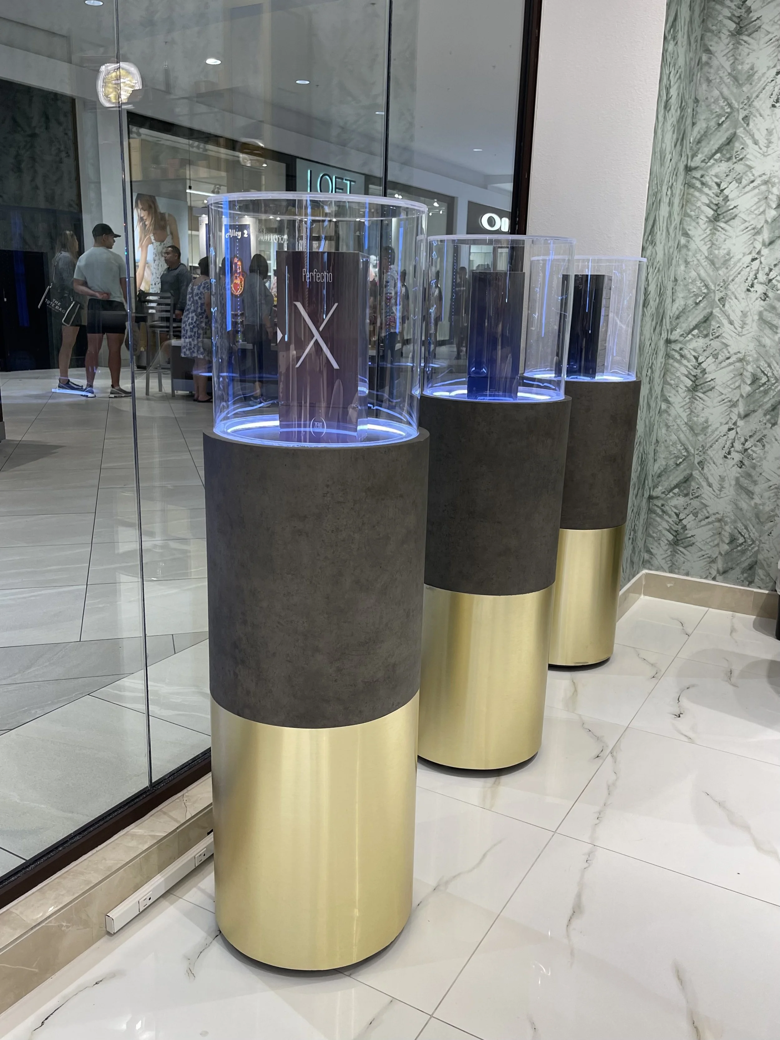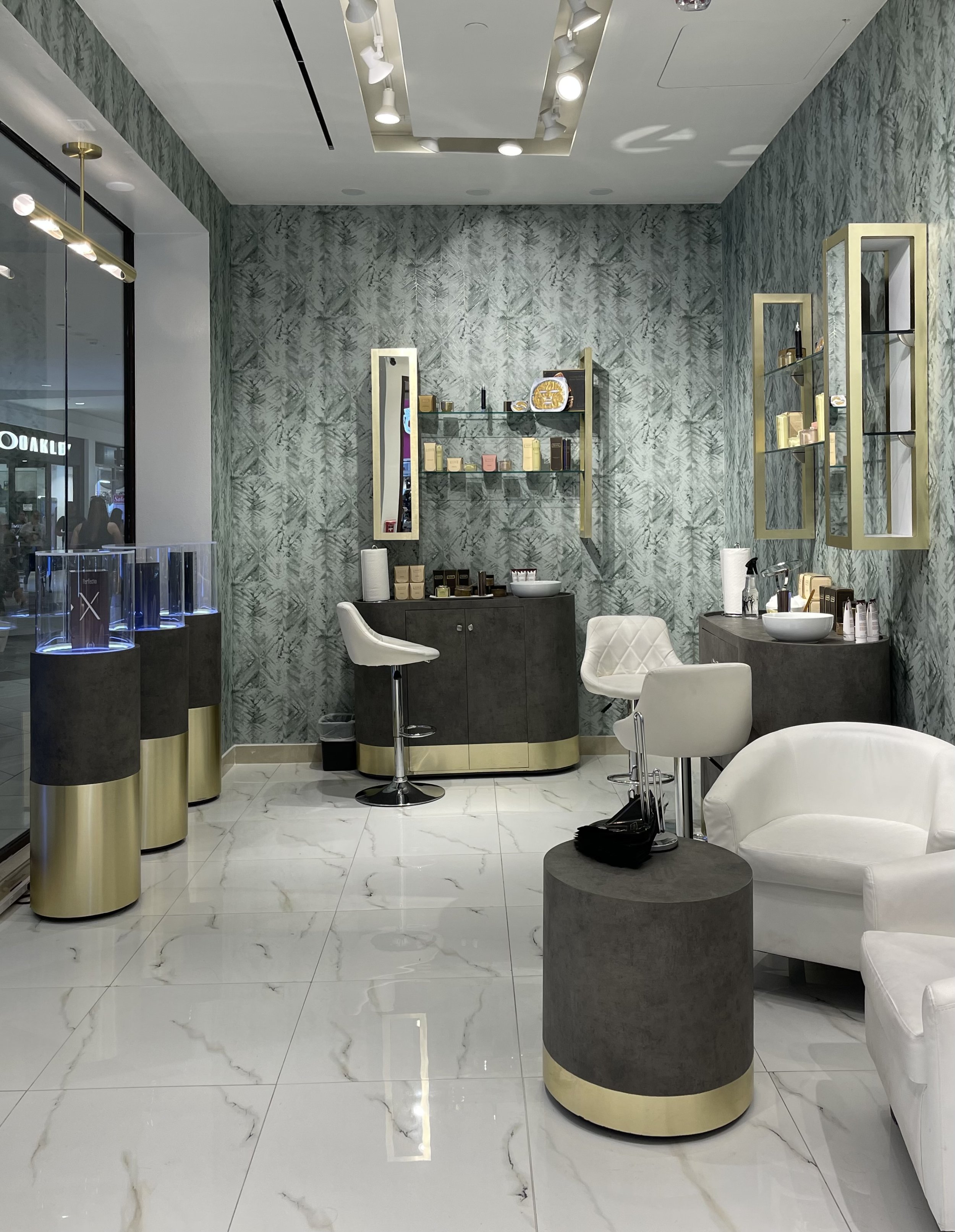 Earth Tech La Plaza Mall es un local comercial de productos de cuidado de la piel, ubicado en La Plaza Mall en McAllen, Texas. Construido por GHL Proyectos en 2021, este proyecto destaca por su diseño innovador y el uso de materiales como lámina dorada de acero rallado, porcelanato y papel tapiz.